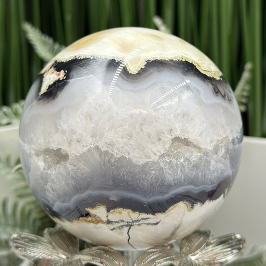Volcanic Agate Quartz Sphere UV Reactive Crystal Ball 528g 73mm