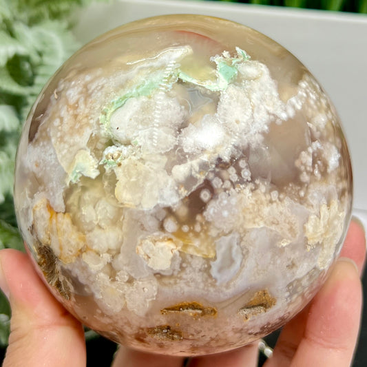 Green Flower Agate Sphere Crystal Ball 190g 53mm