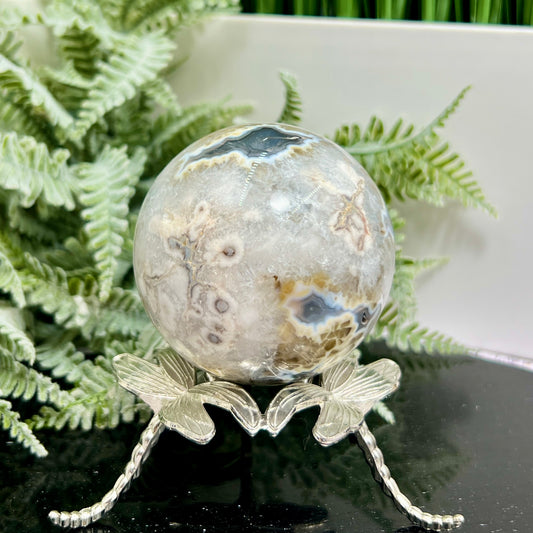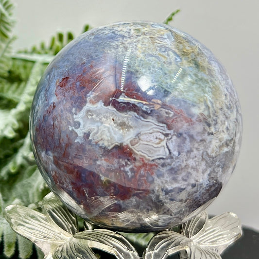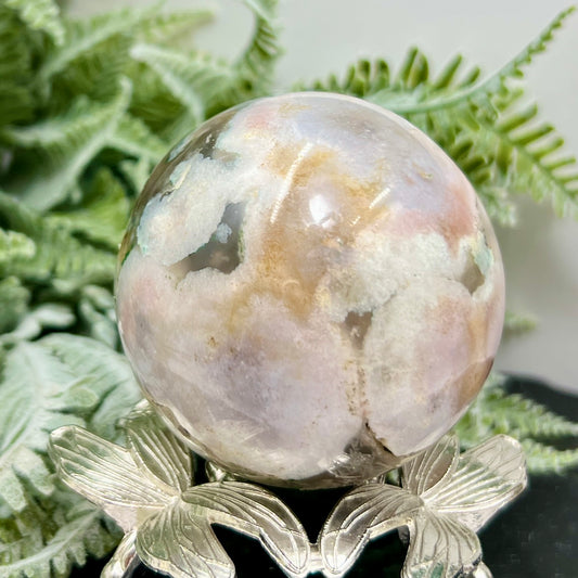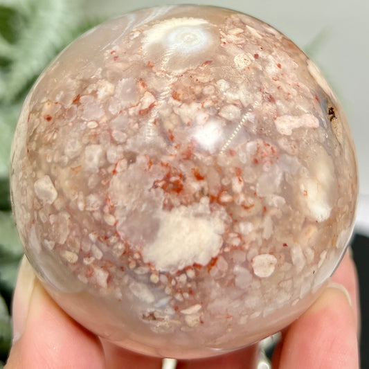 Flower Agate Sphere Healing Crystal Ball 371g 65mm