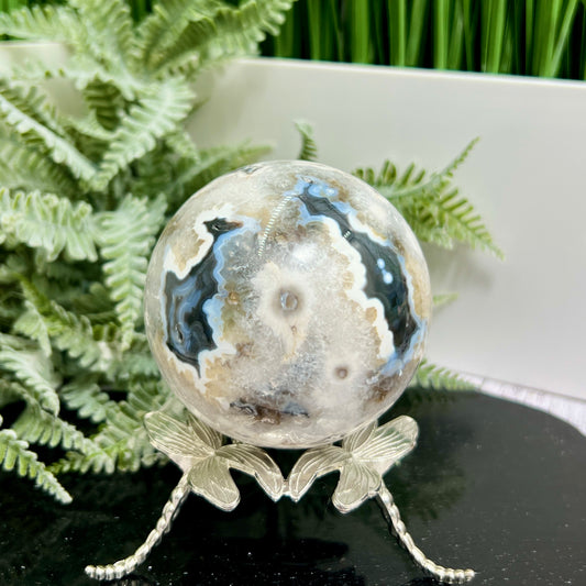Argentina Black Flower Agate Quartz Sphere Healing Crystal Ball 597g 76mm