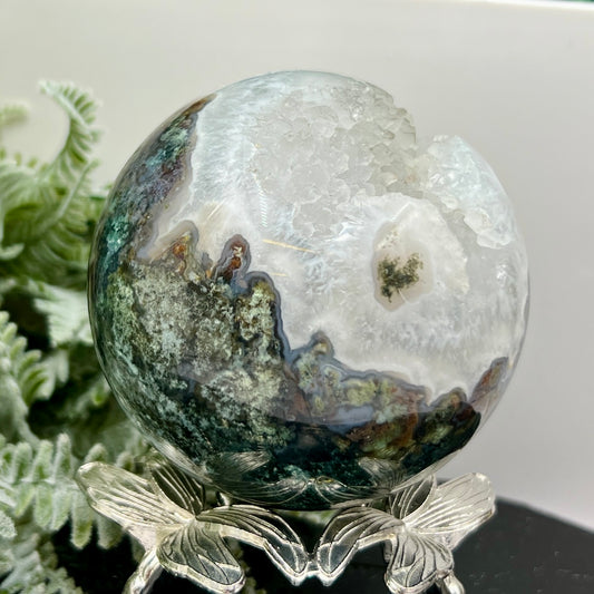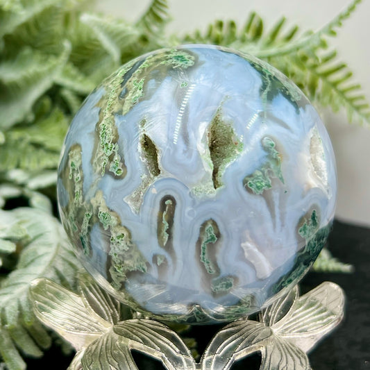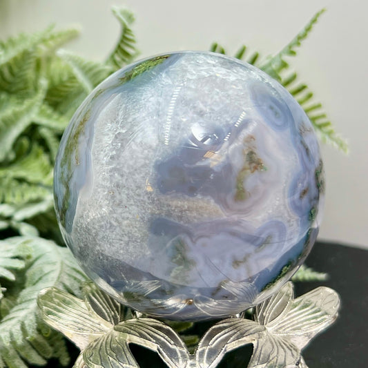 Blue Green Moss Agate Sphere High Quality Crystal Ball 378g 65mm