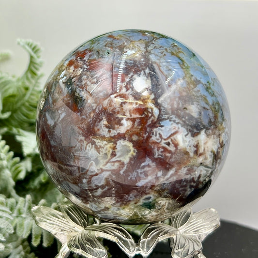 Blue Red Green Moss Agate Quartz Sphere High Quality Crystal Ball 592g 76mm