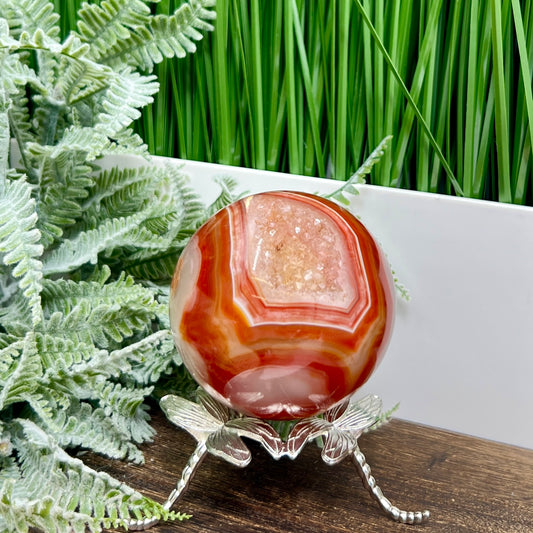 Carnelian with Quartz Sphere Healing Crystal Ball 226g 55mm