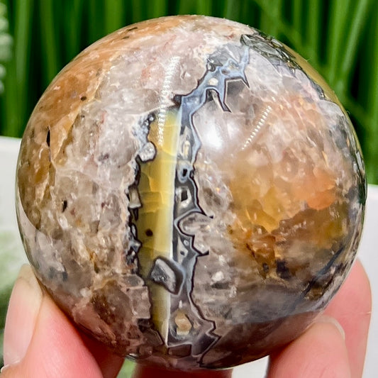 Mosaic Chalcedony Quartz Sphere RARE Healing Crystal Ball 242g 57mm Diameter