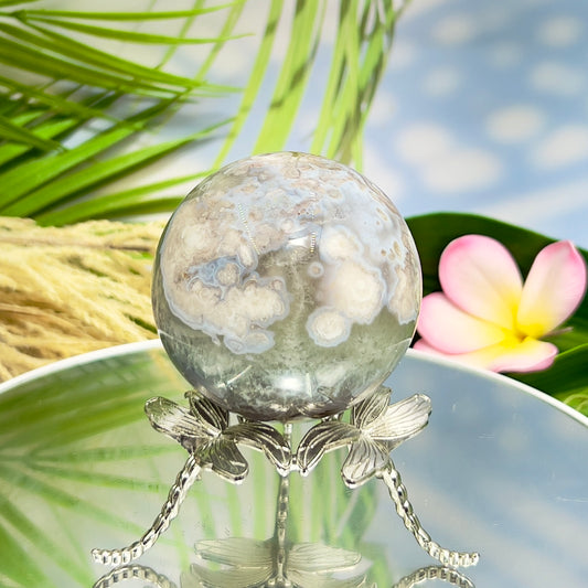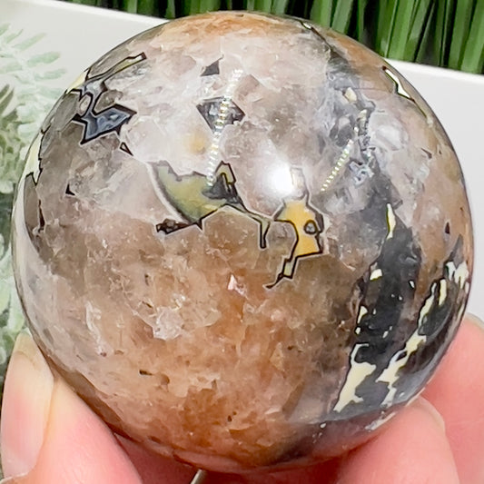 Russian Flower Cherry Blossom Jasper Sphere Rare Crystal Ball 146g 48mm