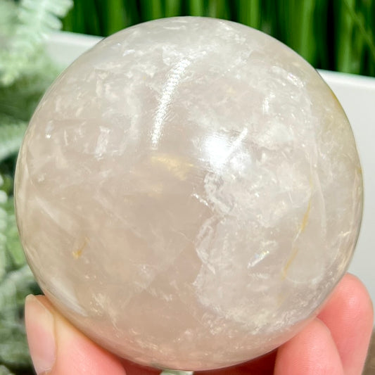 Blue Rose Quartz with Golden Healer Sphere Healing Crystal Ball 470g 70mm