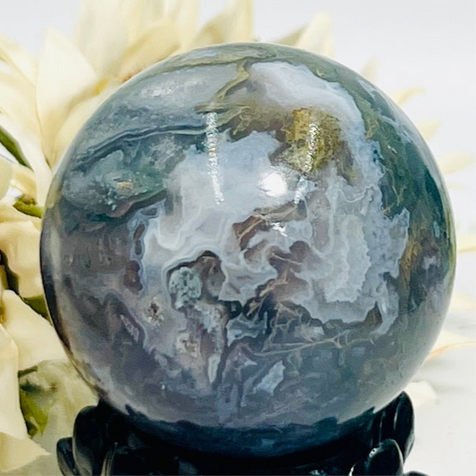 Moss Agate Green Blue Sphere Healing Crystal Ball 356g 63mm
