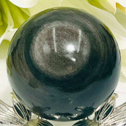 Silver Sheen Obsidian Sphere Healing Crystal Ball 230g 56mm
