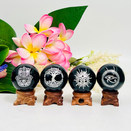Black Obsidian Spheres Hamsa Tree of Life Eye of Horus Sun Crystal Ball
