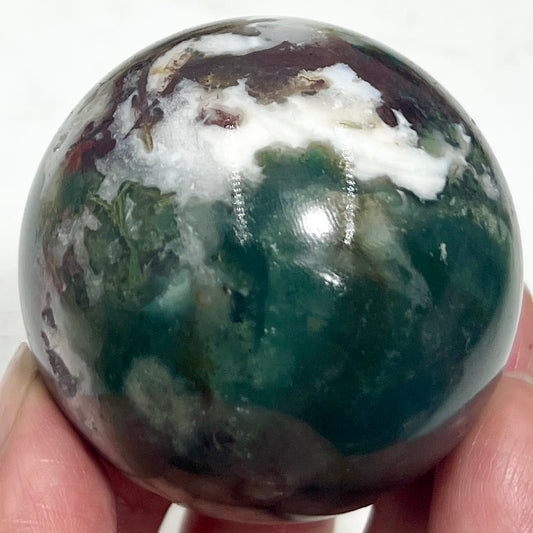 Moss Agate Green Red Sphere Healing Crystal Ball 243g 55mm