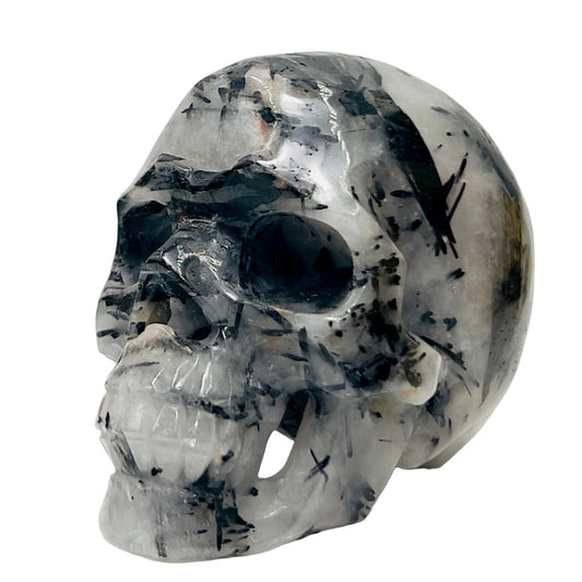 Black Tourmaline in Quartz Skull Hollow Jaw Healing Crystal Carving 715g