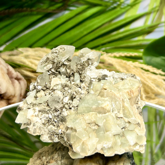 Lemurian Seed Quartz Black Tourmaline Galena Calcite Raw Crystal Specimen 346g