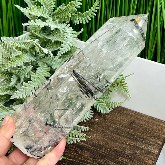 Black Tourmaline in Clear Quartz Top Quality Tower Crystal Generator 942g 203mm