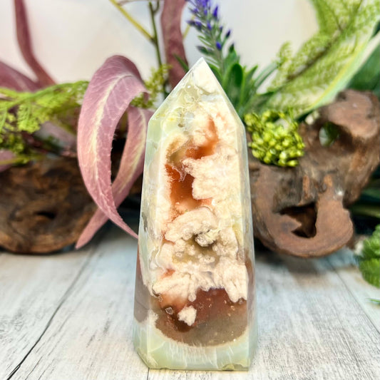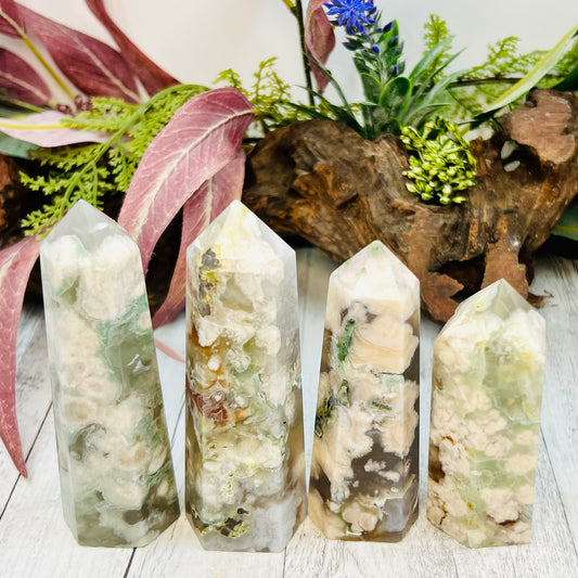 Green Flower Agate Sakura Rare Points Towers Crystal YOU CHOOSE