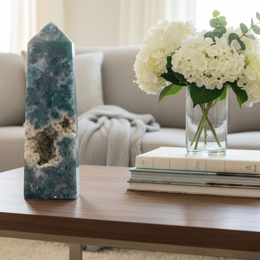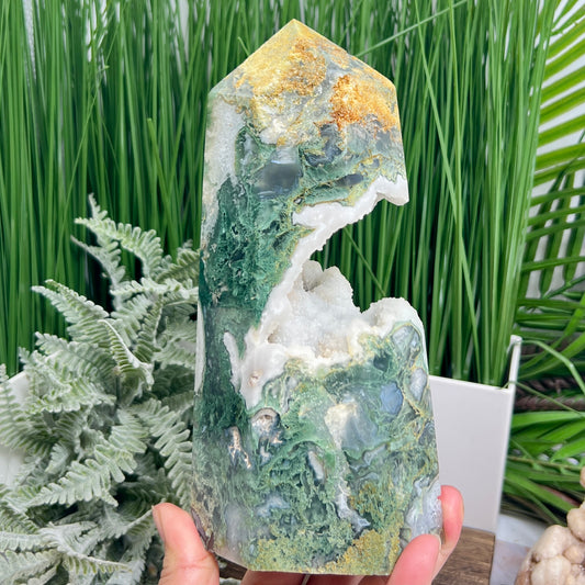 Moss Agate Tower Healing Crystal Generator 1170g 181mm