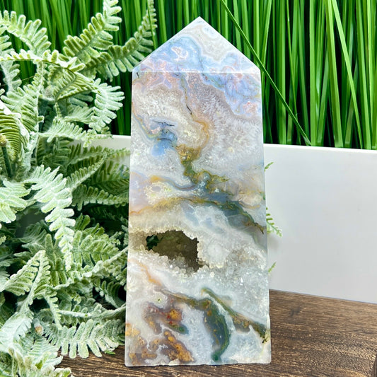Druzy Agate Tower Crystal Generator 340g