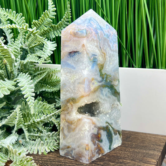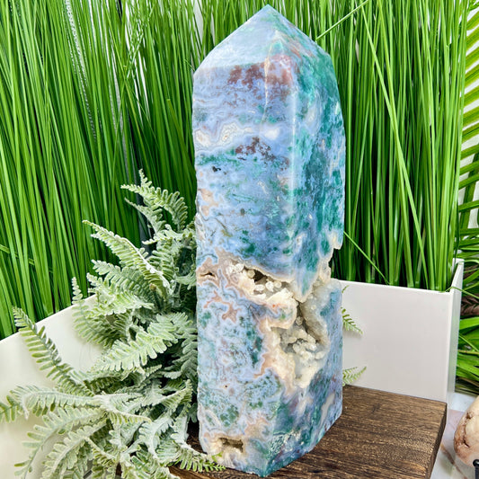 Blue Moss Agate Tower Rare Healing Crystal Generator 3776g 299mm