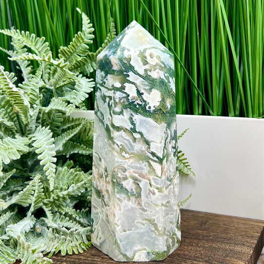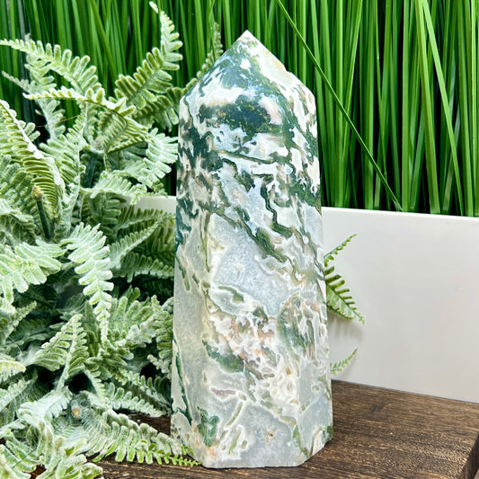 Moss Agate Tower Healing Crystal Generator 1354g 199mm