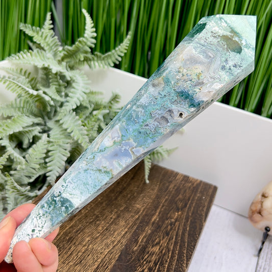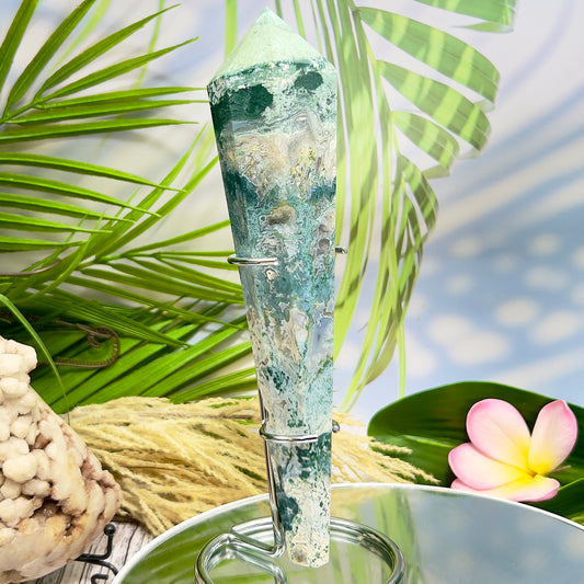 Moss Agate Wand with Stand Healing Crystal Ball 402g 218mm