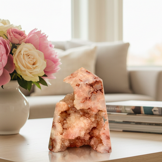 Pink Amethyst Flower Agate Tower Healing Crystal Generator 650g 179mm