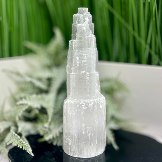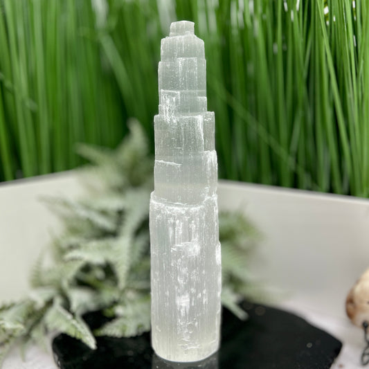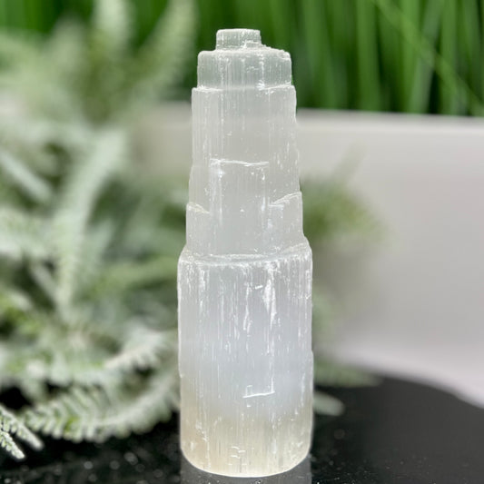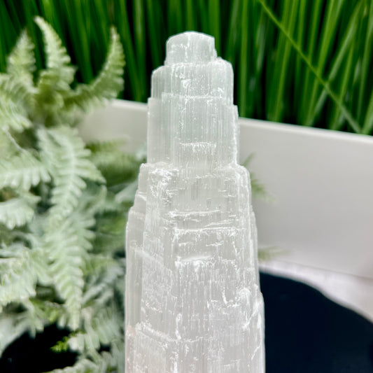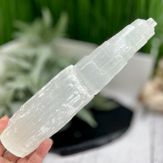 Satin Spar Selenite Tower Crystal Generator Morocco 430g 147mm
