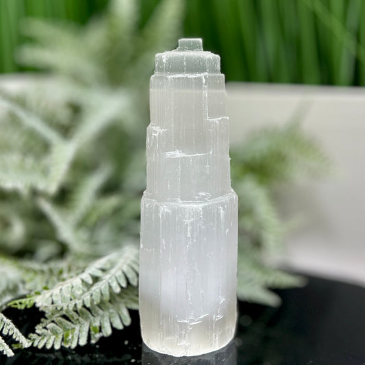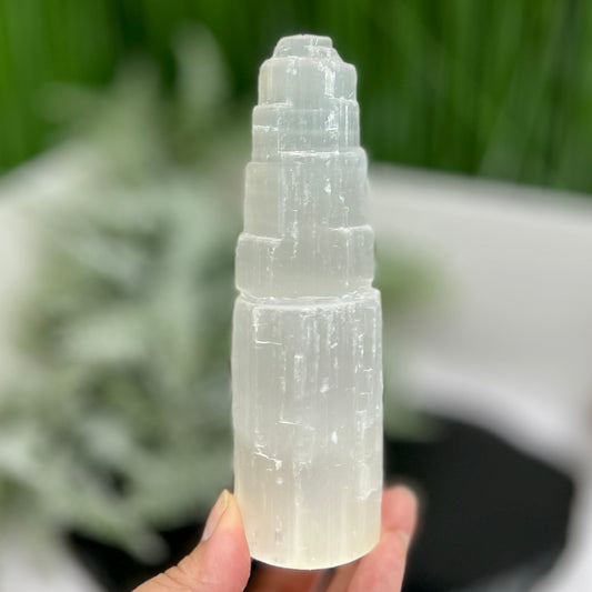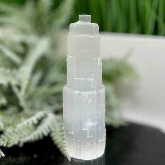Satin Spar Selenite Tower Crystal Generator Morocco 378g 147mm