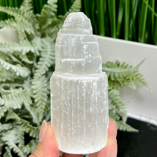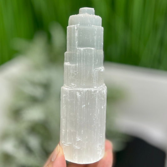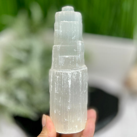Satin Spar Selenite Tower Crystal Generator Morocco 240g 99mm