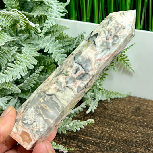 Russian Flower Cherry Blossom Jasper Tower Healing Crystal Generator 816g 196mm