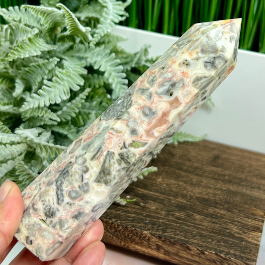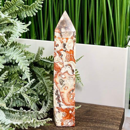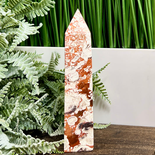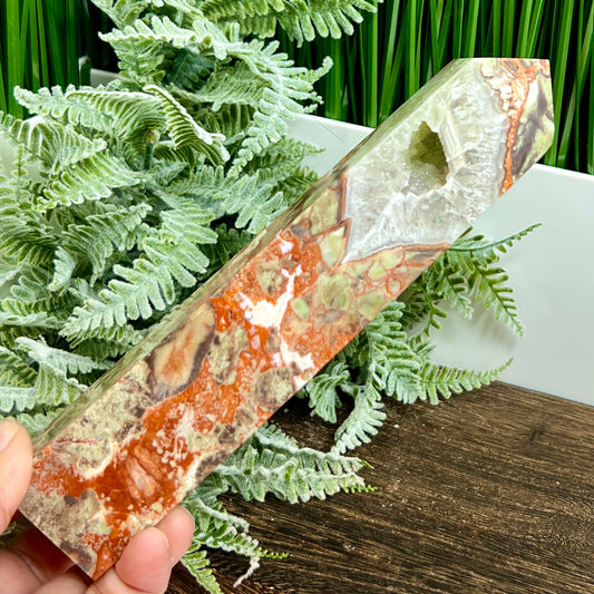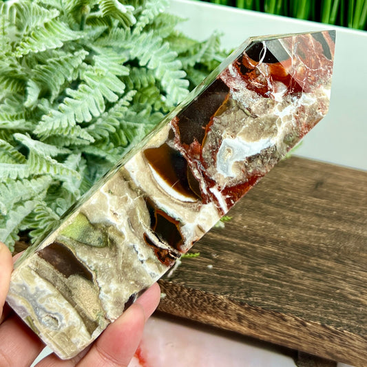 Red Moss Agate Tower Rare Healing Crystal Generator 543g 163mm