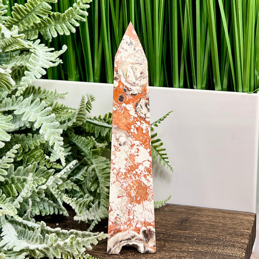 Indonesian Bloodstone Money Agate Tower Crystal Generator 180g 105mm