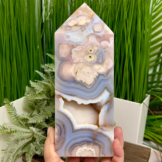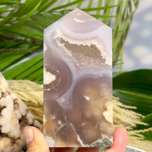 Flower Agate Tower Healing Crystal Generator 416g 111mm