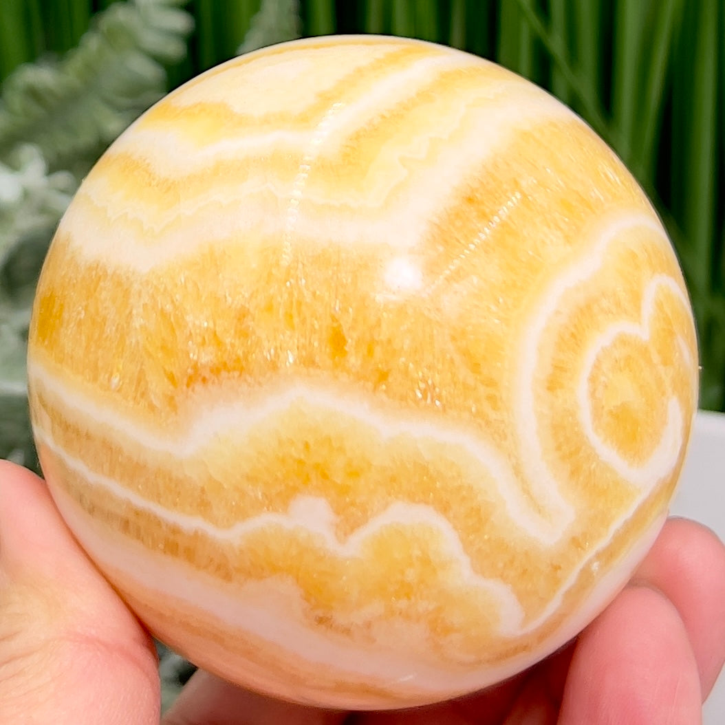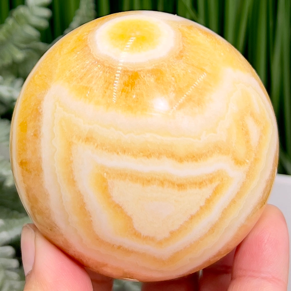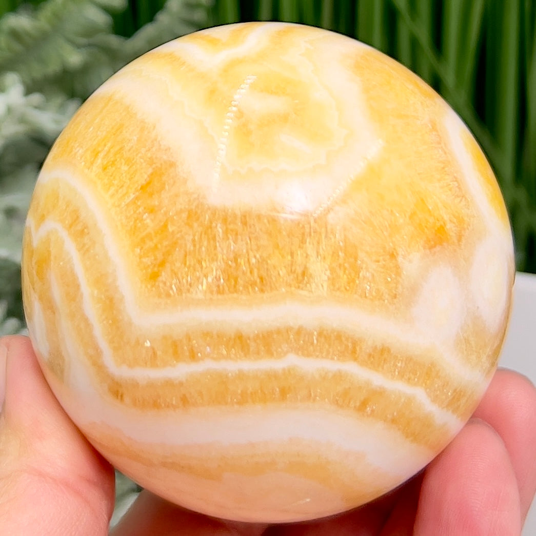 Banded Orange Calcite Sphere Healing Crystal Ball 488g 71mm