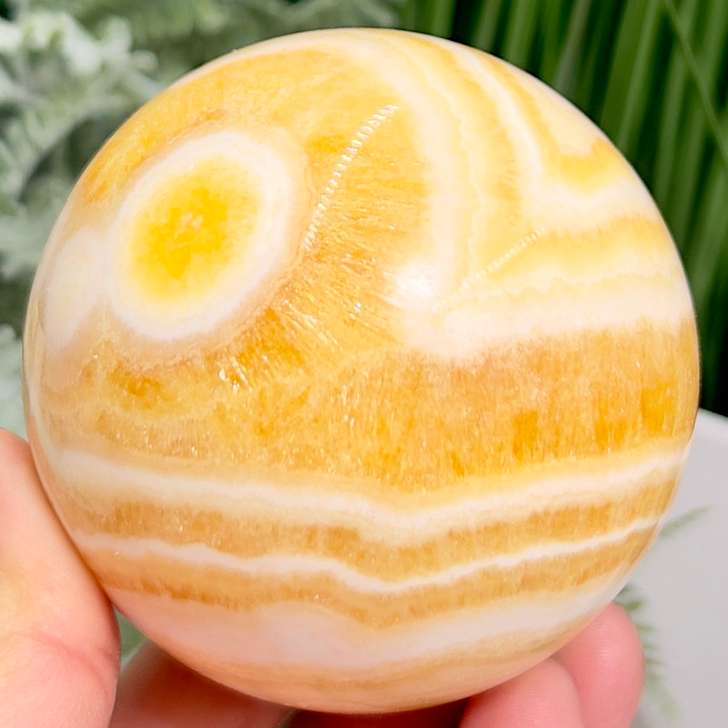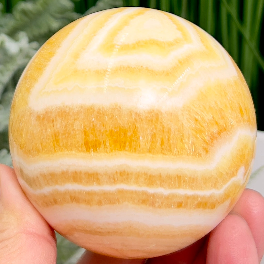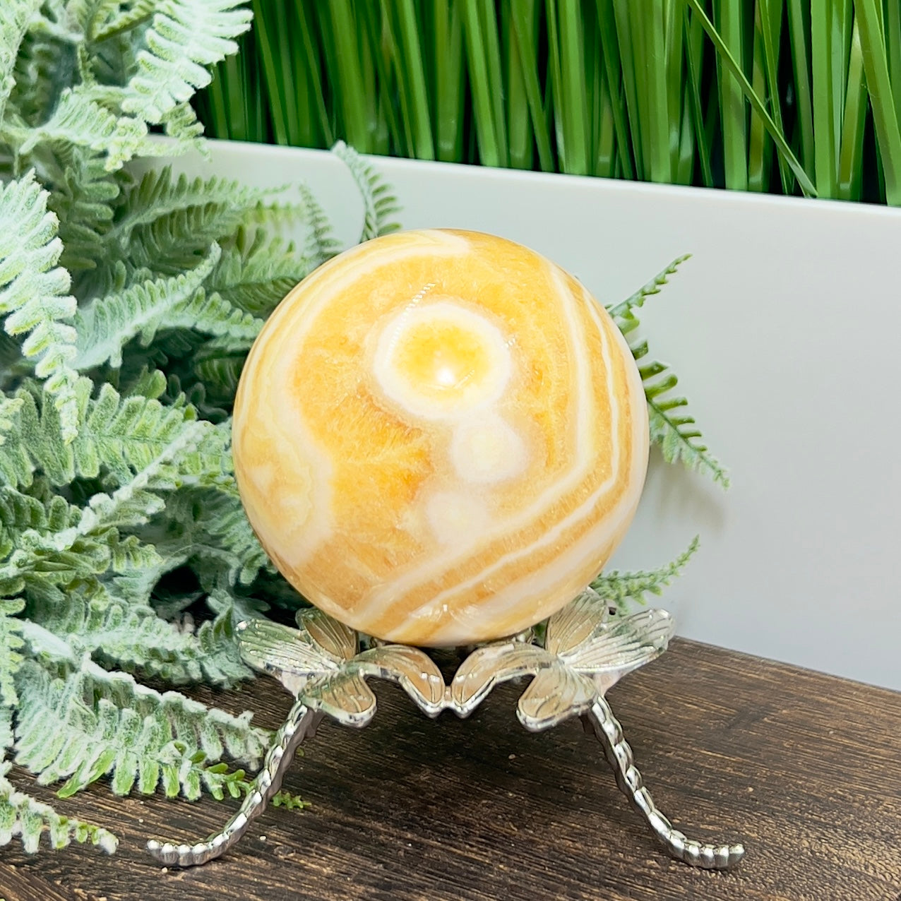 Banded Orange Calcite Sphere Healing Crystal Ball 488g 71mm