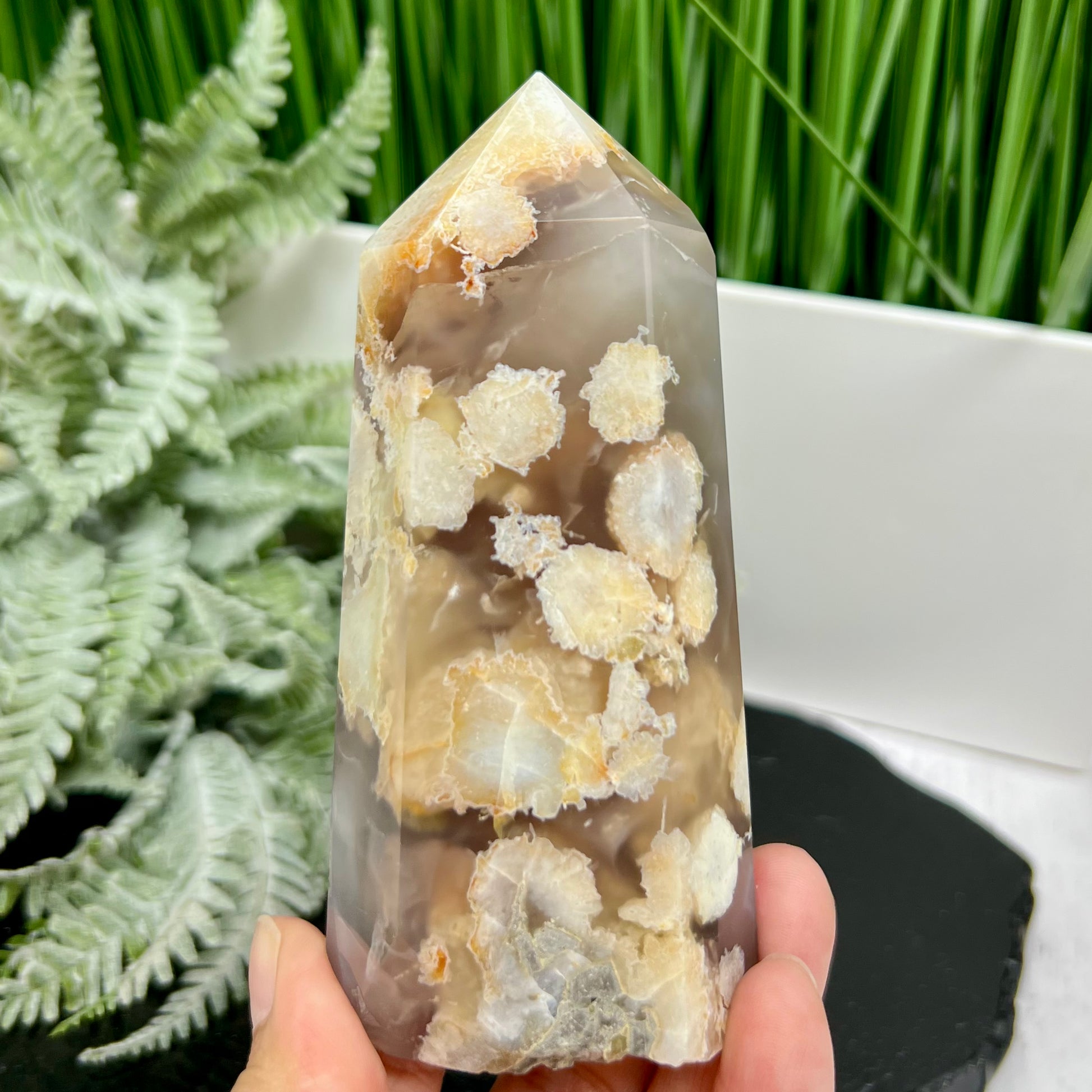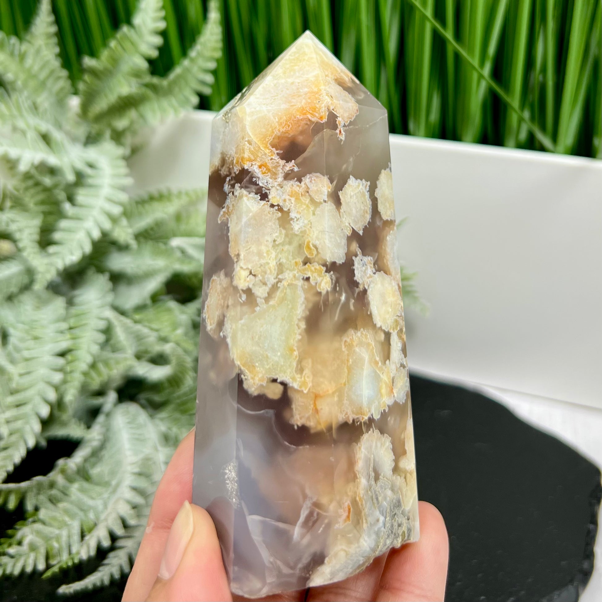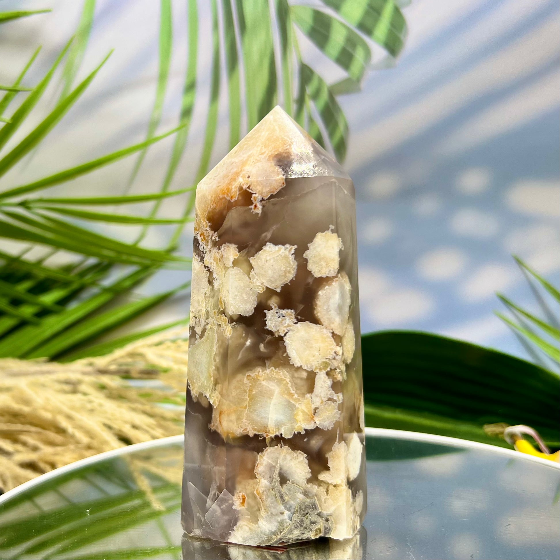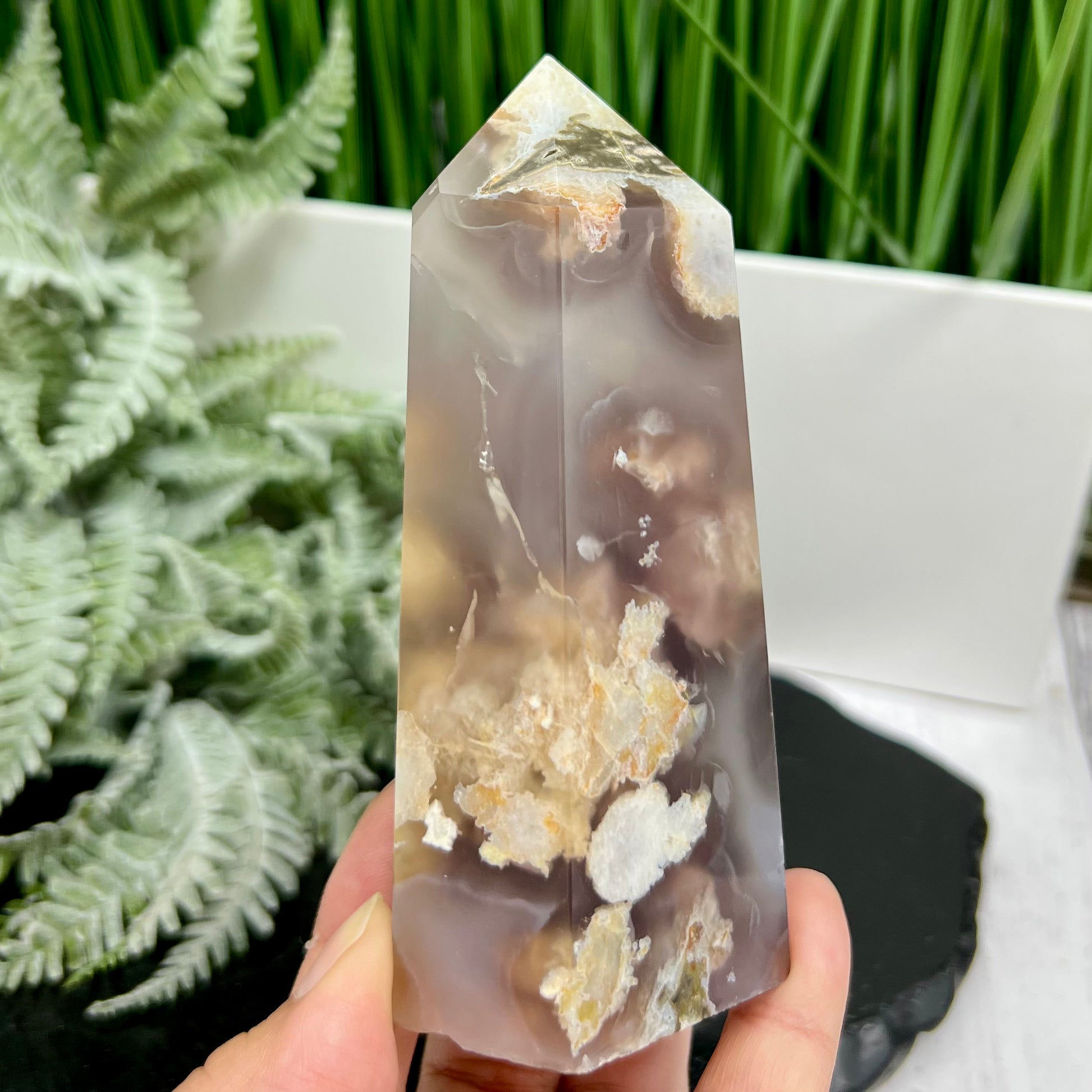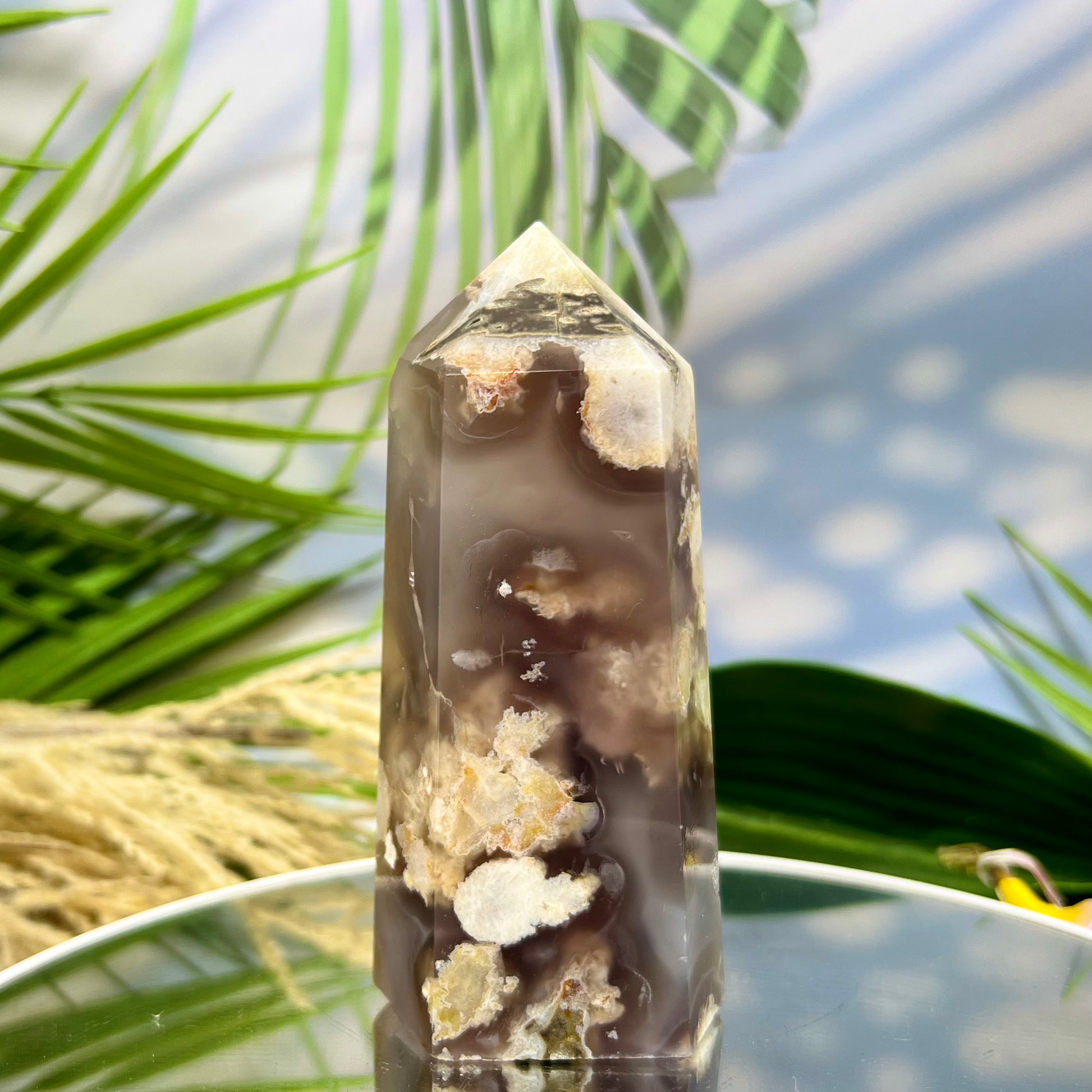 Black Flower Agate Tower Healing Crystal Generator 374g