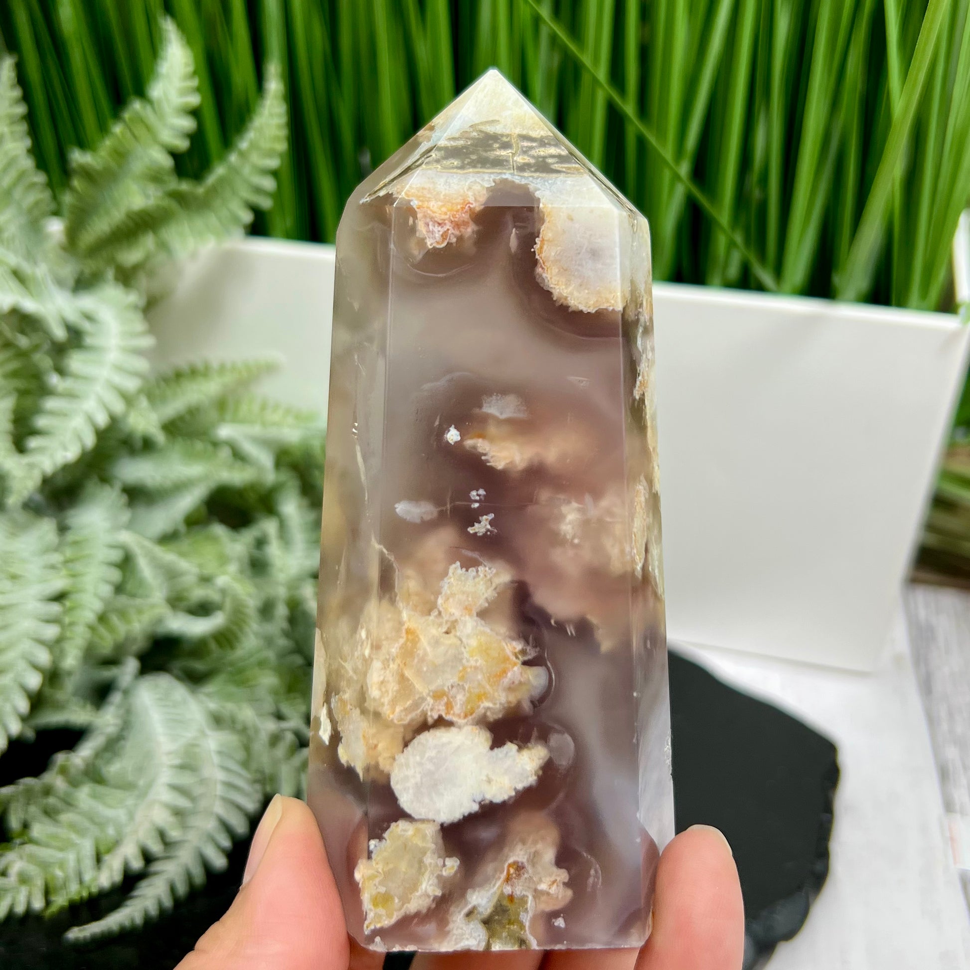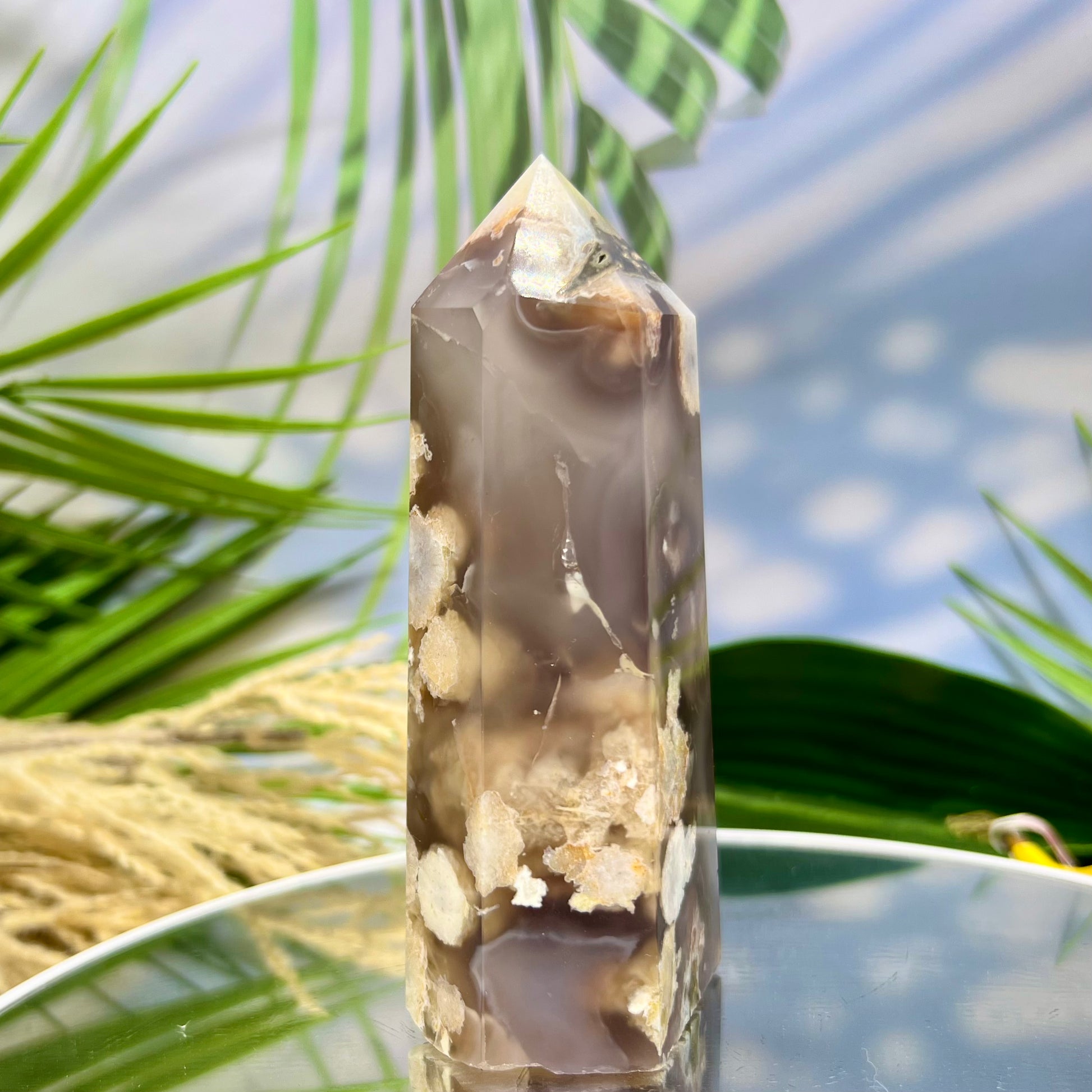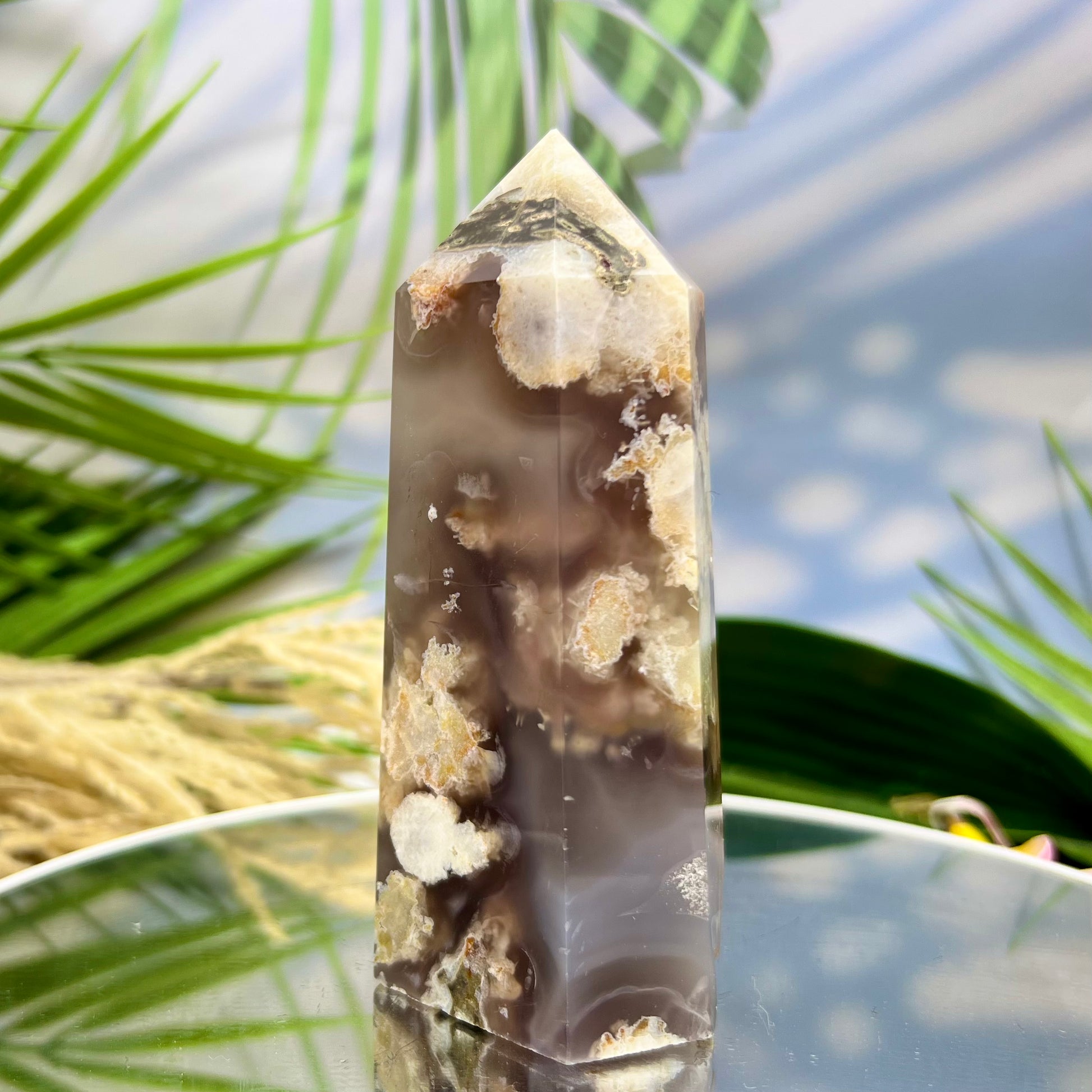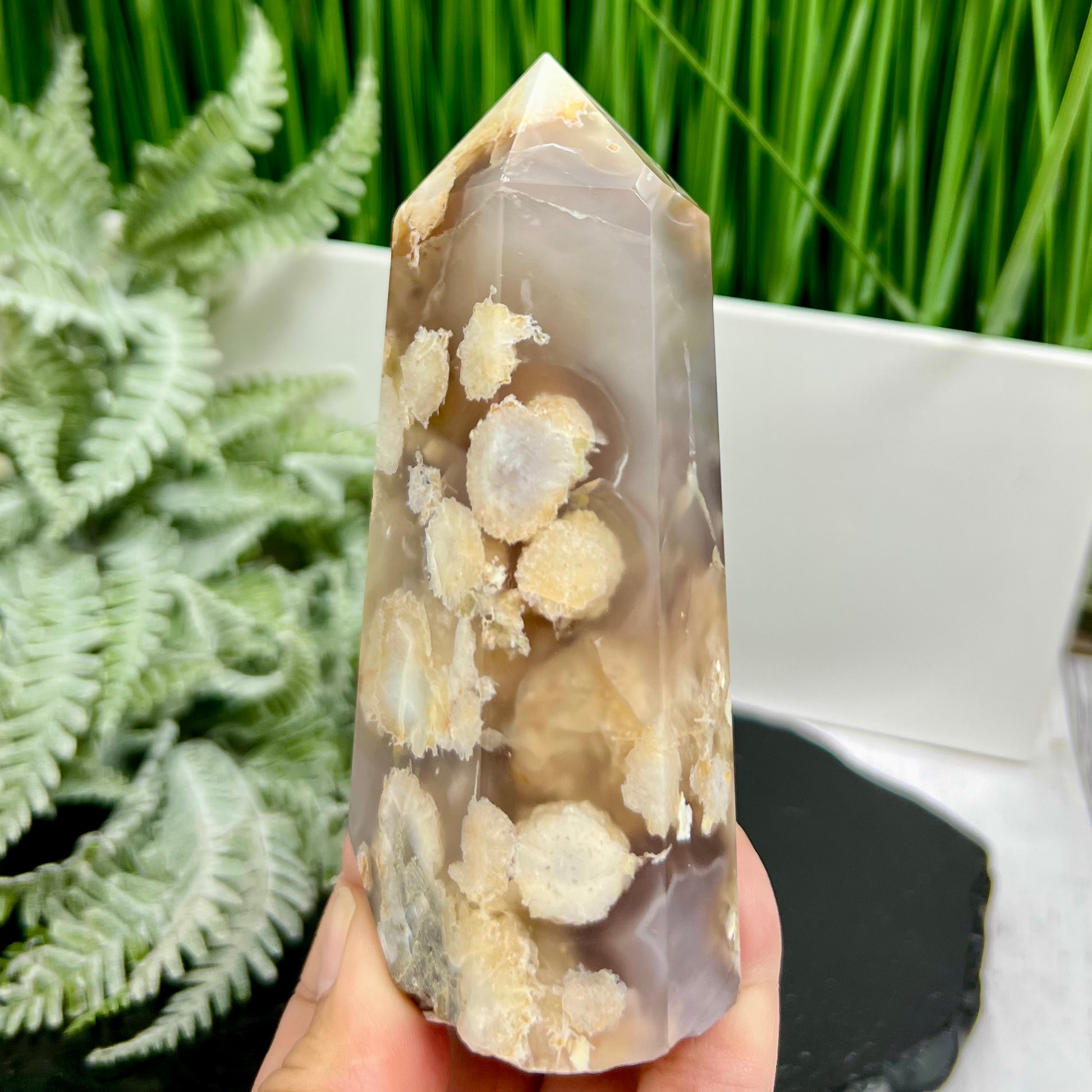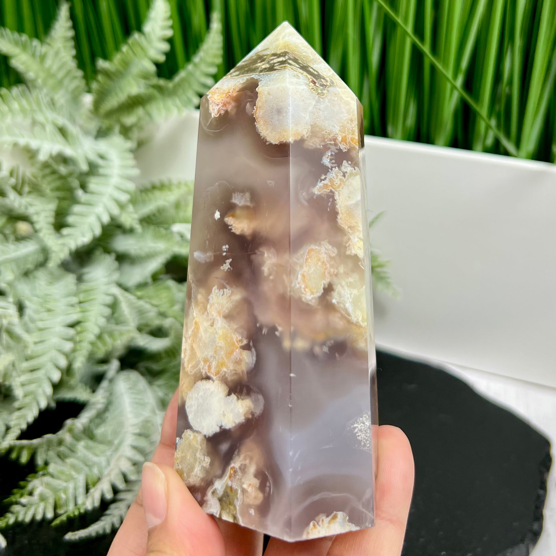 Black Flower Agate Tower Healing Crystal Generator 374g