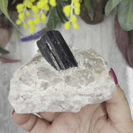 Black Tourmaline in Quartz Specimen Raw Crystal 492g