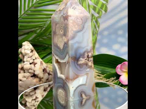 Blue Flower Agate Tower Healing Crystal Generator 1678g 198mm