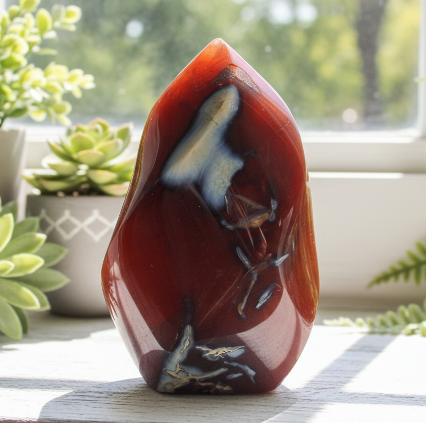 - Carnelian: A form of chalcedony rich in iron oxide, giving it a warm reddish-orange hue.