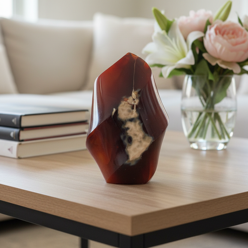 - Carnelian: A form of chalcedony rich in iron oxide, giving it a warm reddish-orange hue.