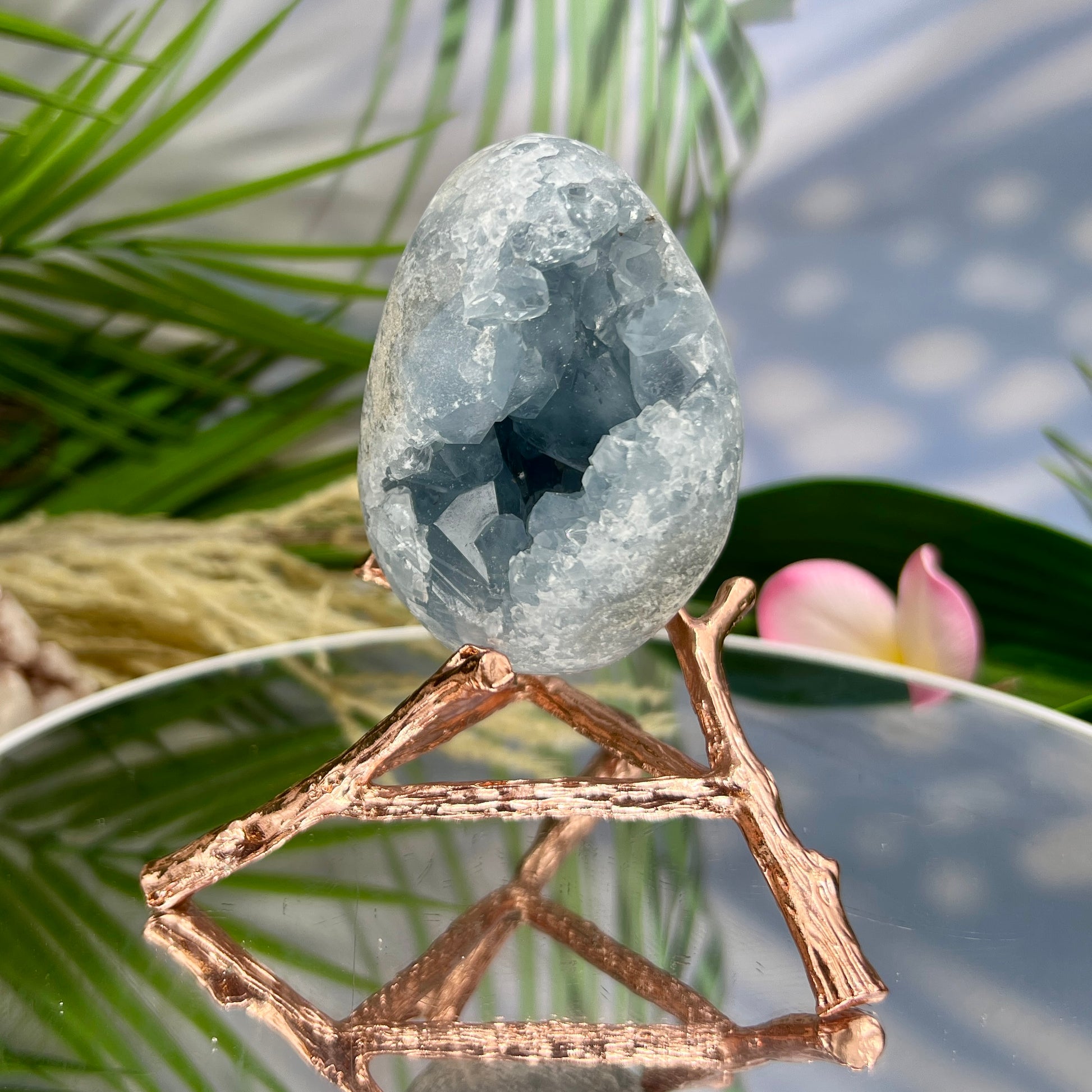 Celestite Celestine Egg with Stand Geode Cluster Crystal 401g