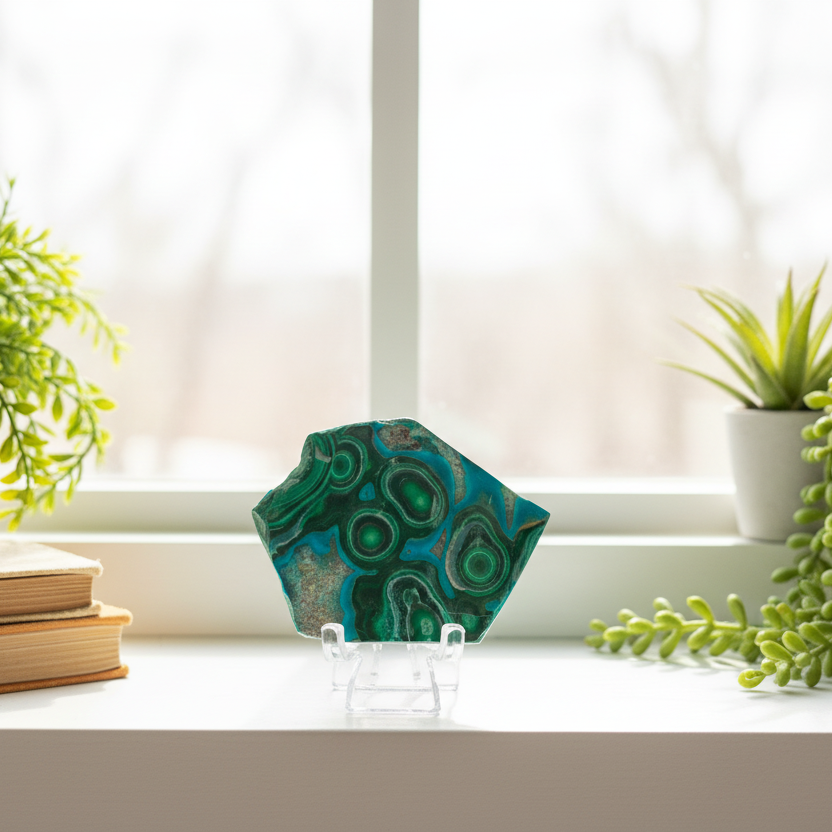 Chrysocolla Malachite Shattuckite Slice Chunk with Stand Crystal Specimen Peru 96g