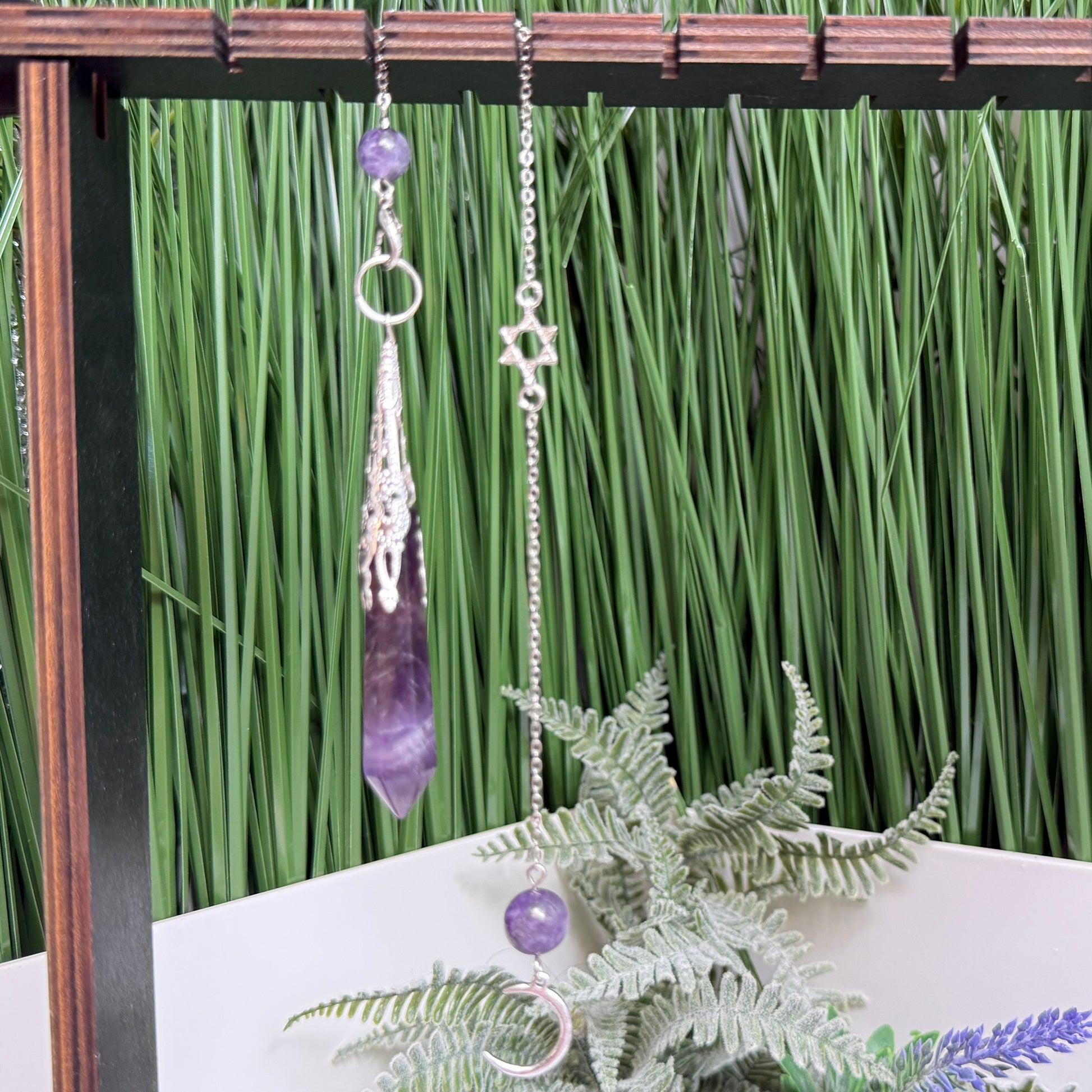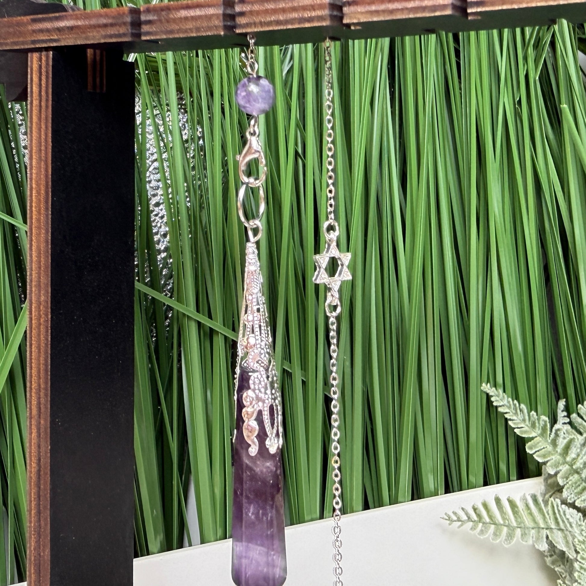 An amethyst pendulum is valued for its calming, protective, and intuitive qualities. It’s often used to support clear decision-making, enhance spiritual awareness, and strengthen intuition during dowsing, meditation, or energy work. Amethyst is also associated with stress relief and emotional balance, so using it as a pendulum can help promote a sense of peace and clarity while asking questions or tuning into subtle energies.