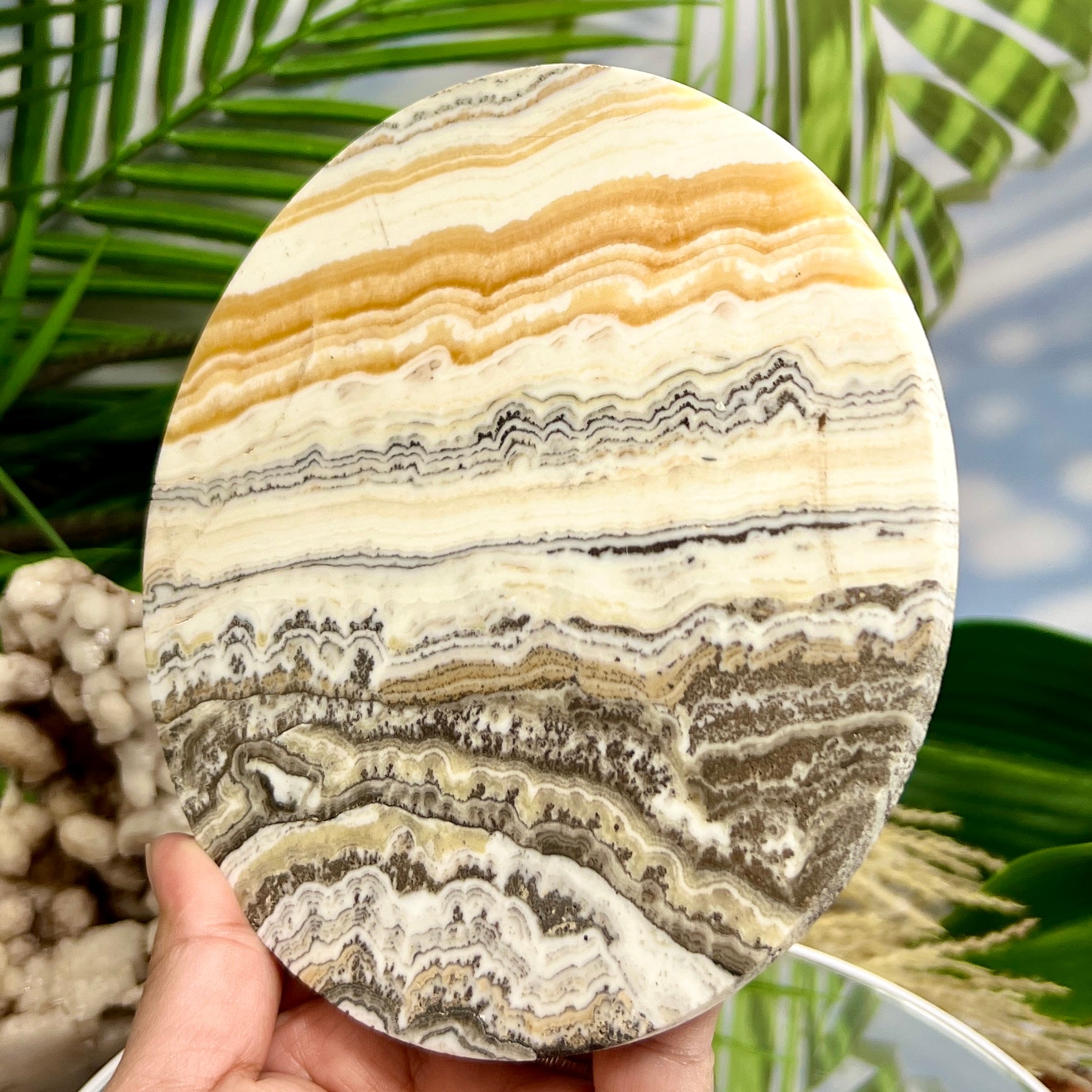 Dendritic Calcite Plate Slice with Stand Healing Crystal Carving 314g