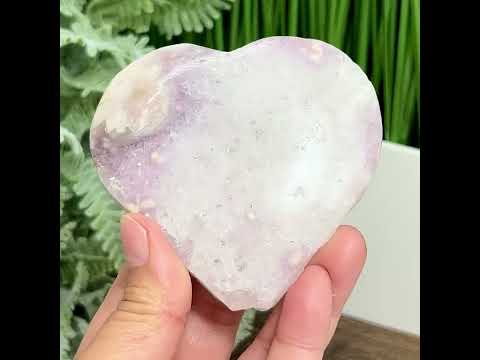 Flower Agate with Pink Purple Amethyst Quartz Heart with Stand Crystal 250g
