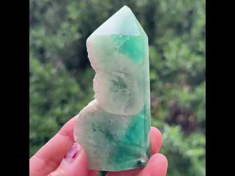 Green Fluorite with Quartz Tower Natural Crystal Generator 202g 88mm