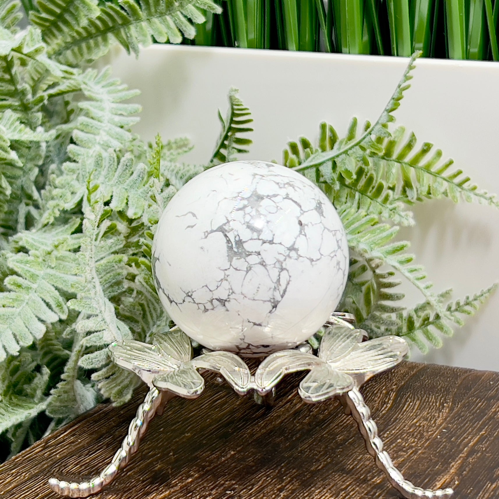 Howlite Sphere Healing White Crystal Ball 188g 50mm