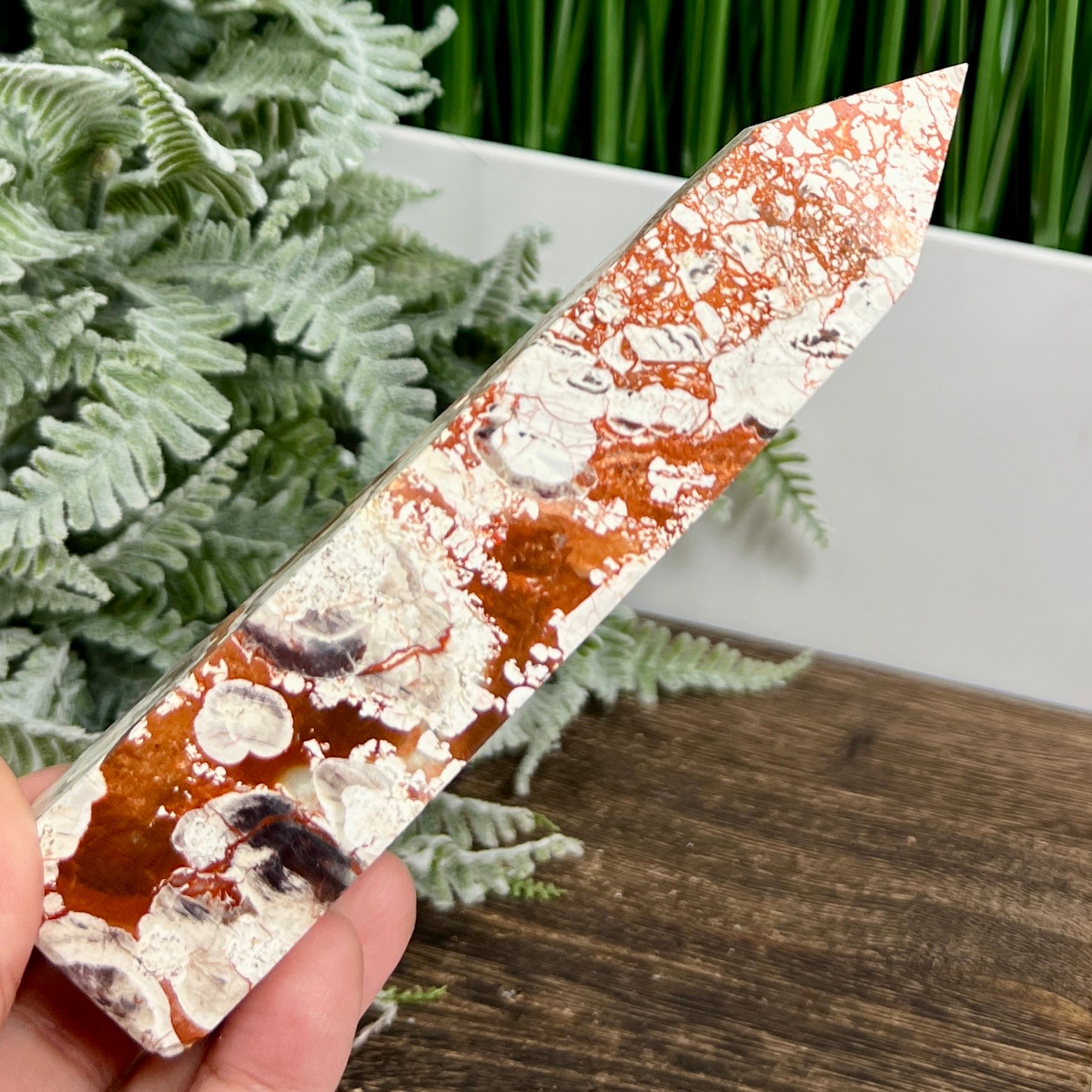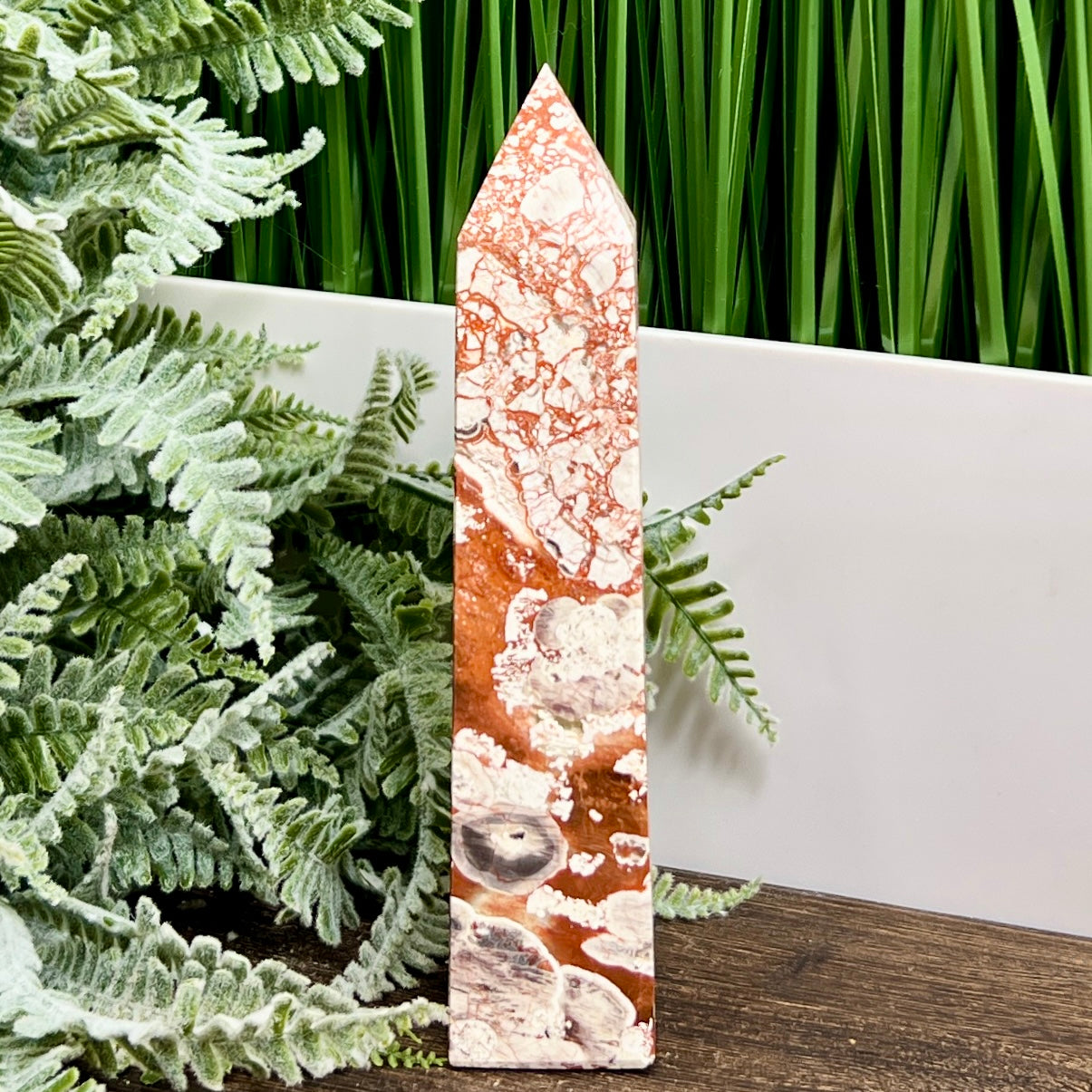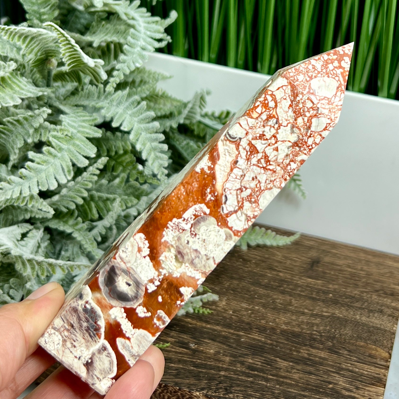 Indonesian Bloodstone Money Agate Tower Crystal Generator 240g 149mm