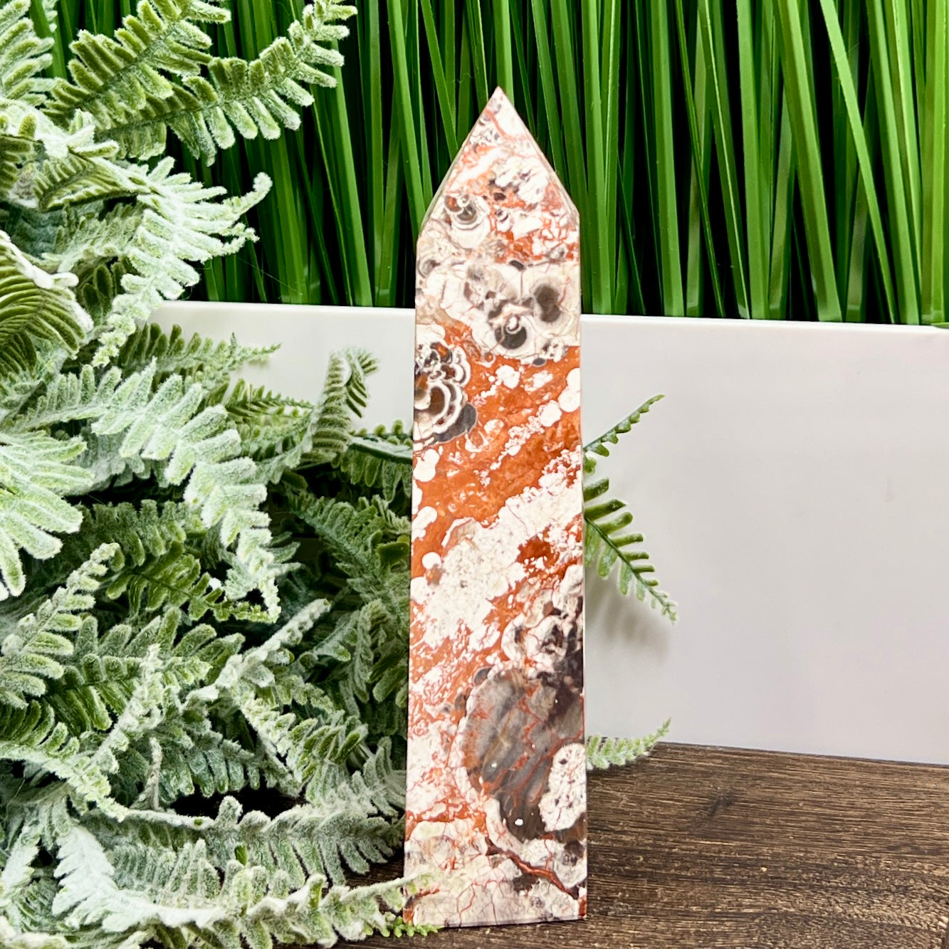 Indonesian Bloodstone Money Agate Tower Crystal Generator 258g 155mm