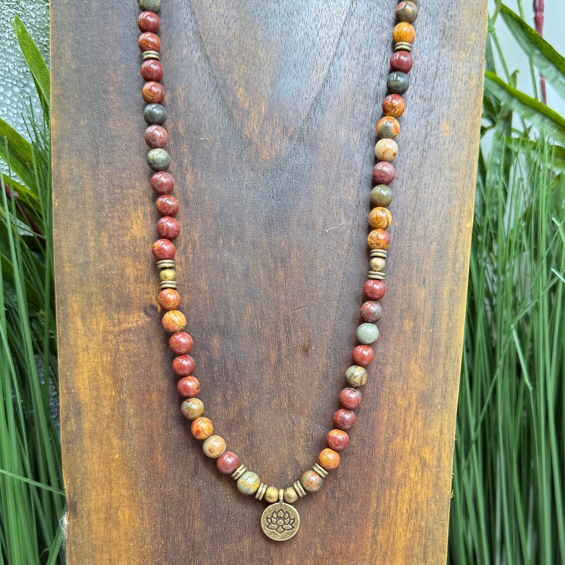 Jasper Mala Necklace Bracelet Elastic Prayer Beads with Lotus Pendant