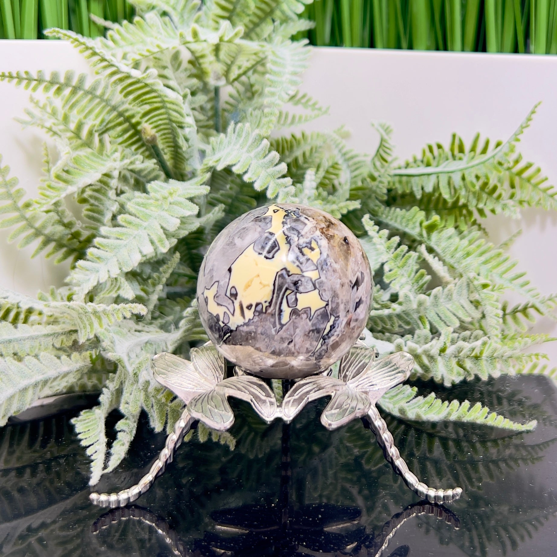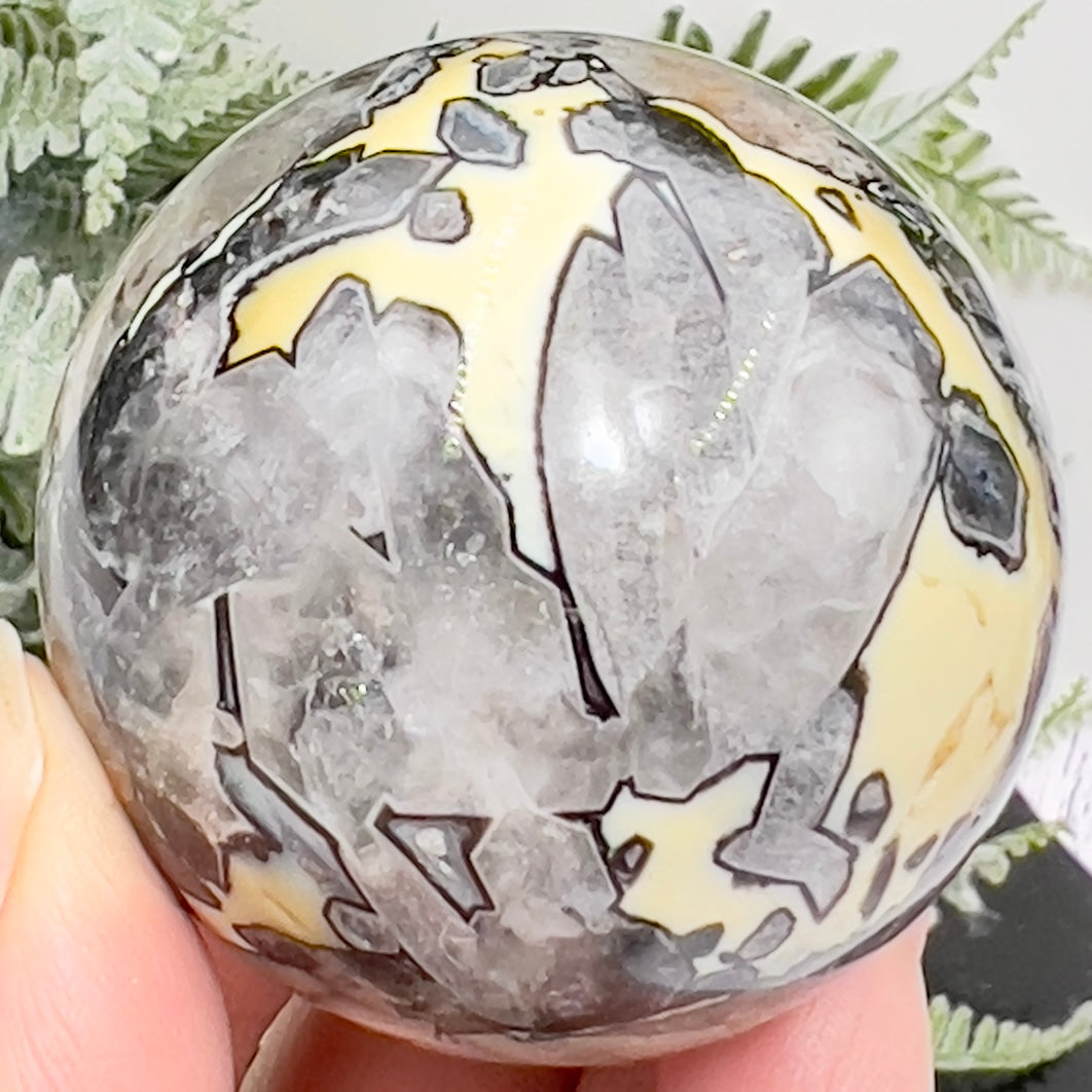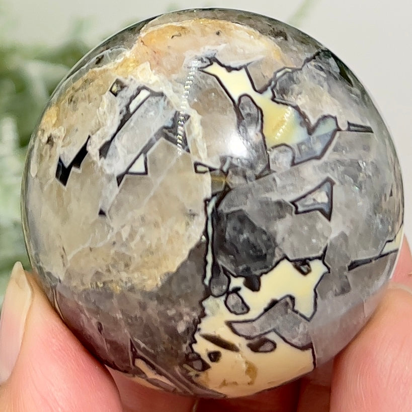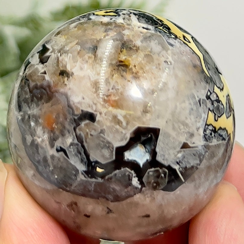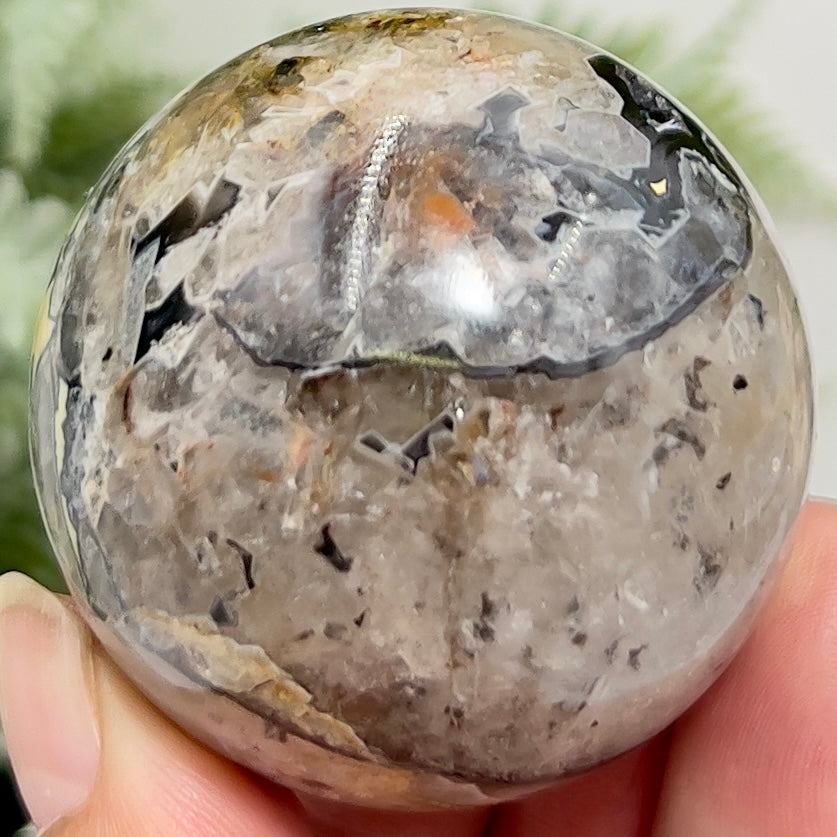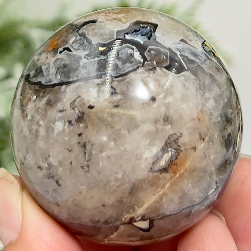 Mosaic Chalcedony Quartz Sphere Rare Healing Crystal Ball 172g 50mm